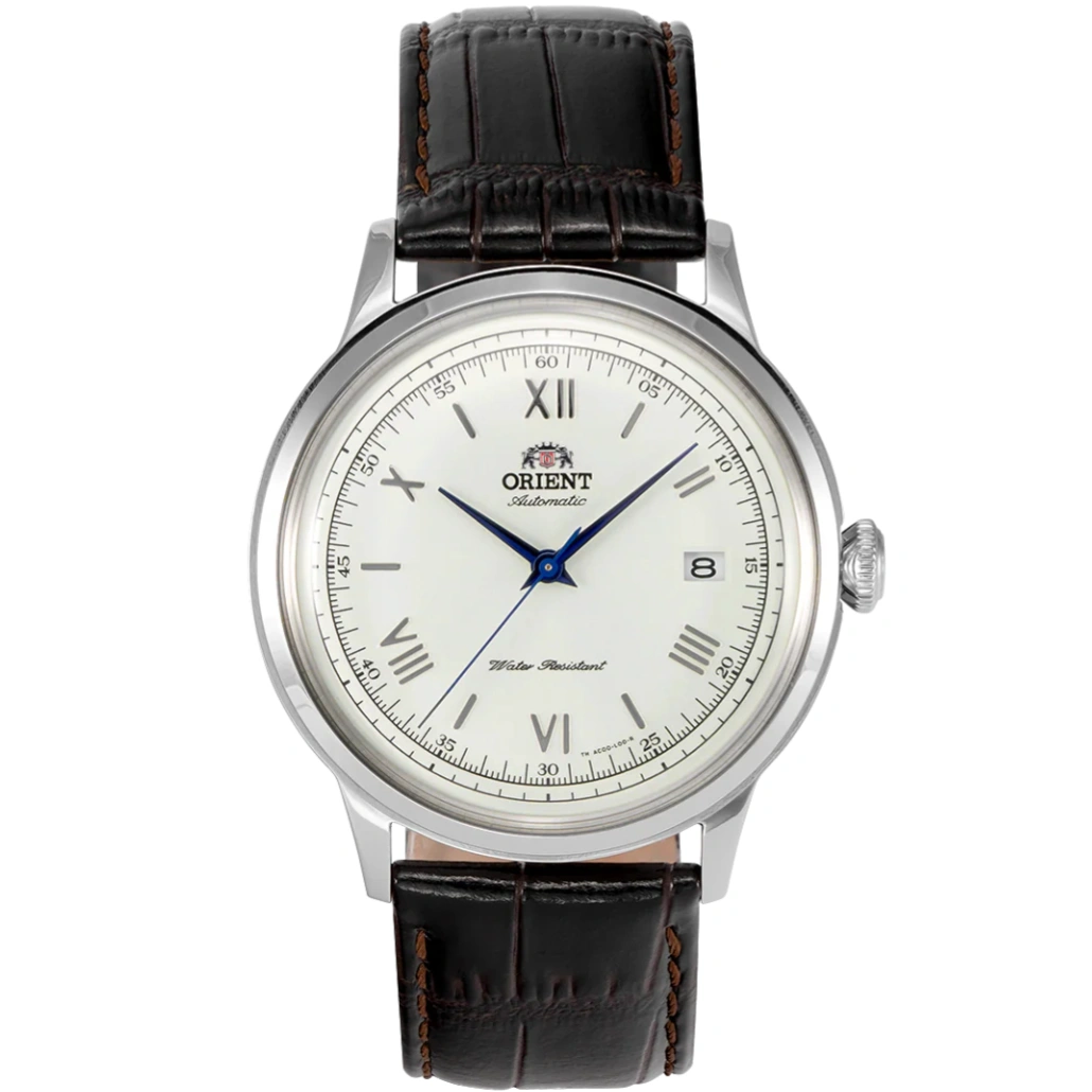 The Orient Bambino Version 2 (TAC00009W) is a refined timepiece that captures the essence of vintage design with modern precision. Featuring a white dial with blue hands, Roman numeral and index markers, and a sleek silver-tone stainless steel case, this automatic watch embodies timeless sophistication. Powered by the Orient Calibre F6724 movement with a 40-hour power reserve, it ensures reliable performance and elegant style for any occasion. The brown leather strap, scratch-resistant mineral crystal, and 30m water resistance make it an excellent everyday dress watch for both men and women.