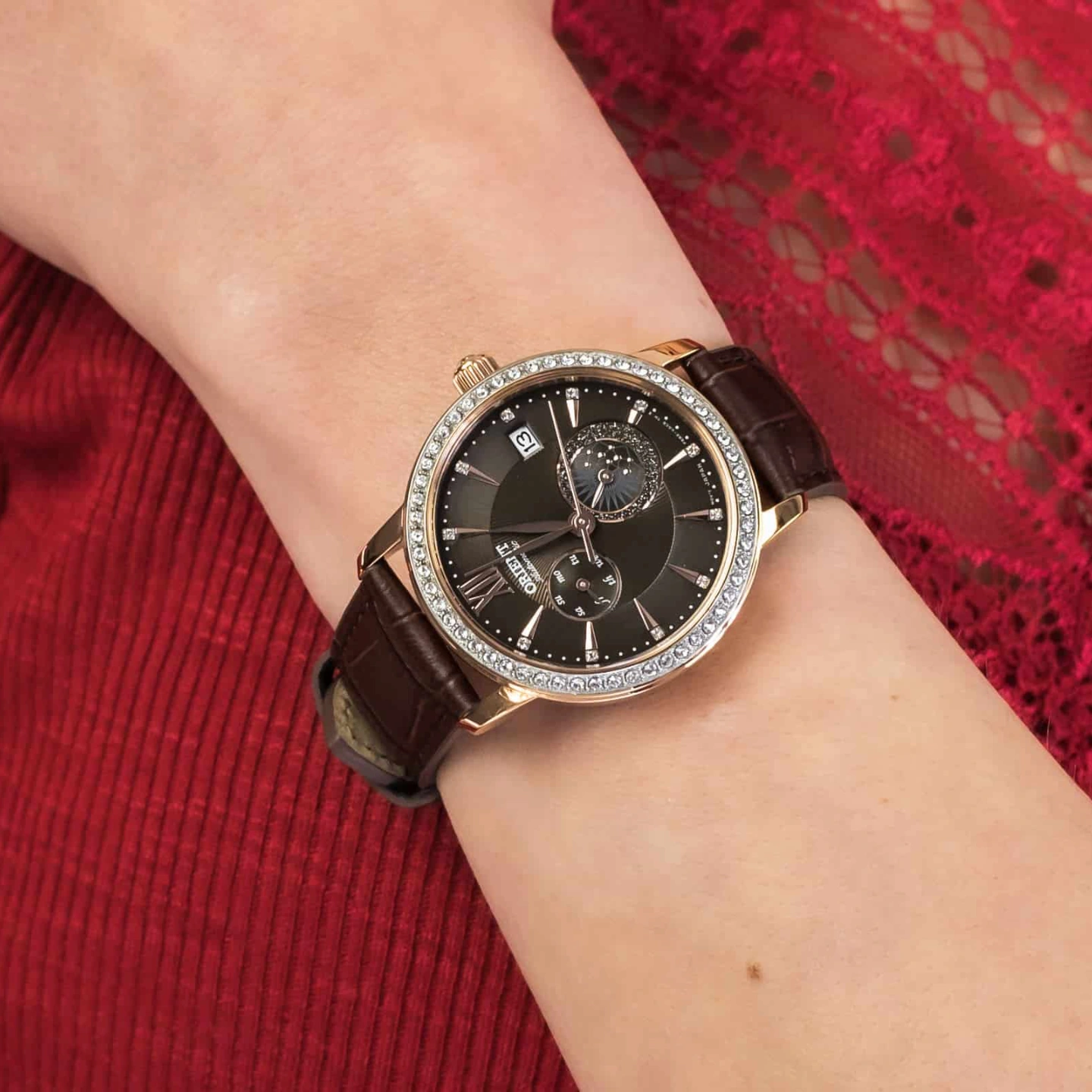 Powered by Orient’s in-house Caliber F6B22 automatic movement with hand-winding capability, the watch delivers reliable accuracy and a 40-hour power reserve, making it perfect for daily wear. With a crystal glass face, leather strap, and 3 bar (30 m) water resistance, the timepiece combines comfort, durability, and modern elegance—an ideal companion for women embracing every “Moving Moment” in life