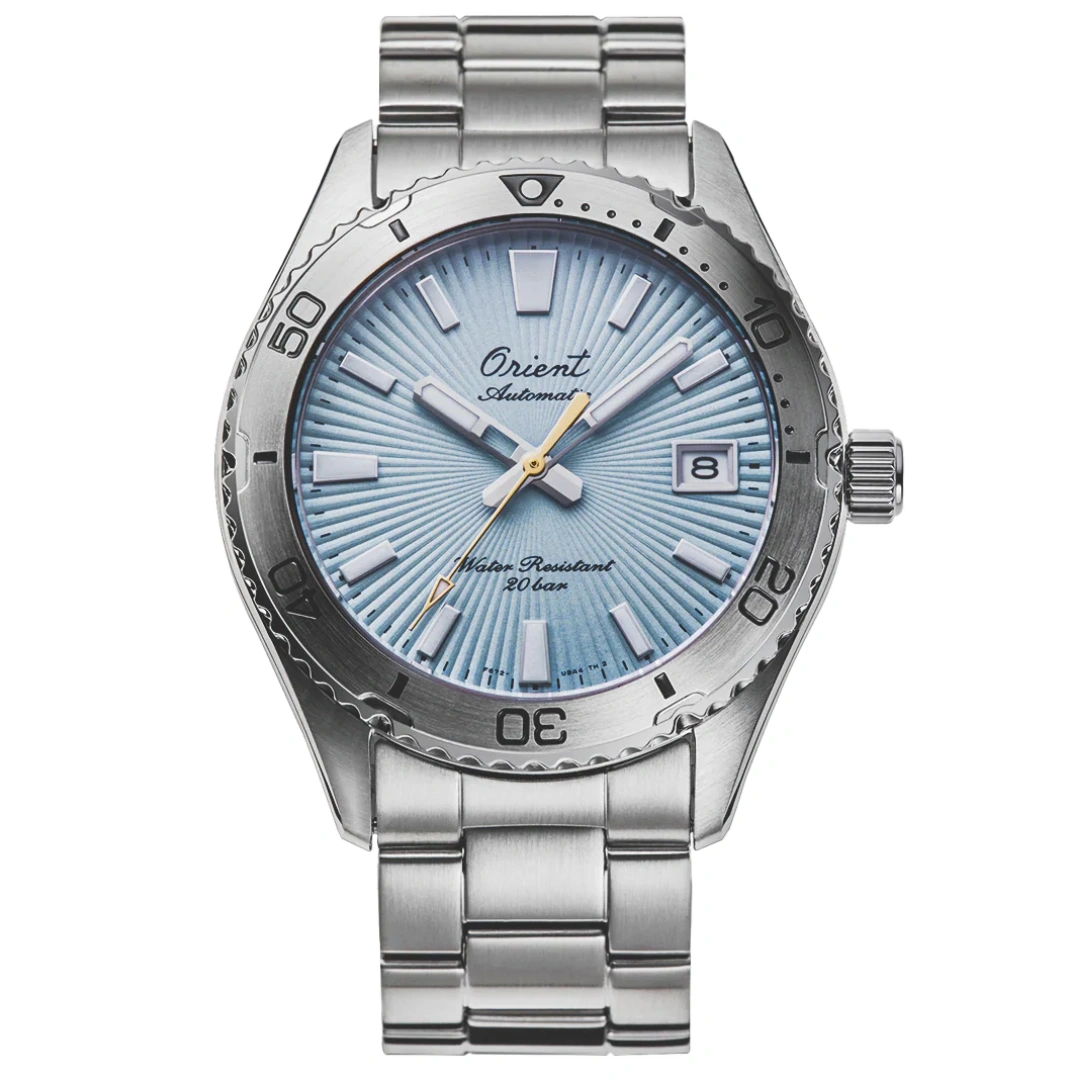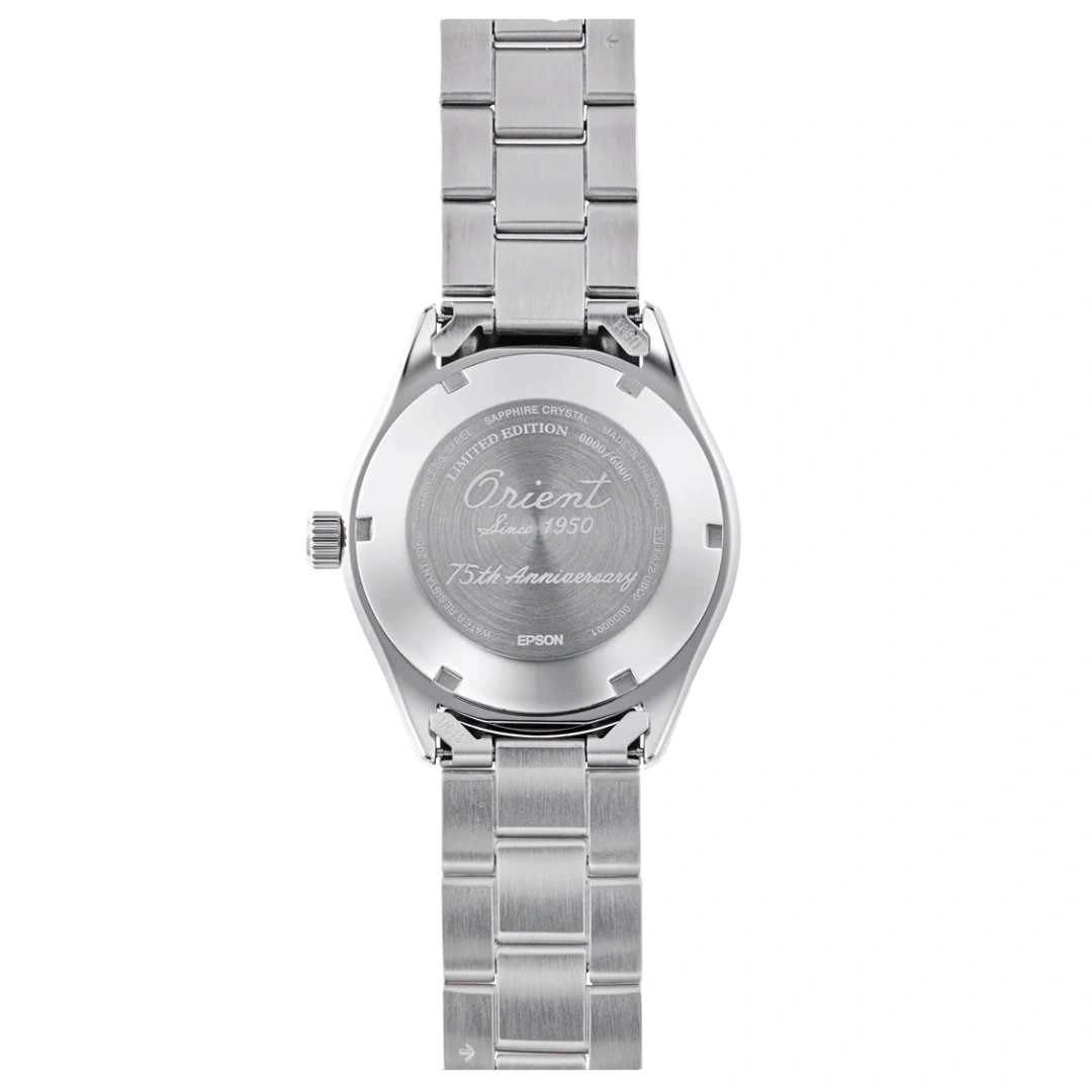 The Orient RA-AC0Q12L evokes the feeling of sunny days, clear skies, and gentle sea breezes. Featuring a sky-blue sunburst dial, sunlight-inspired second hand, and vintage 1950s cursive Orient logo, this limited-edition watch combines classic style with sporty versatility. Its screw-down crown and screw case-back provide 20-bar water resistance, and the case-back is engraved with “Orient Since 1950 – 75th Anniversary” along with the individual serial number, marking it as one of 6,000 pieces worldwide.