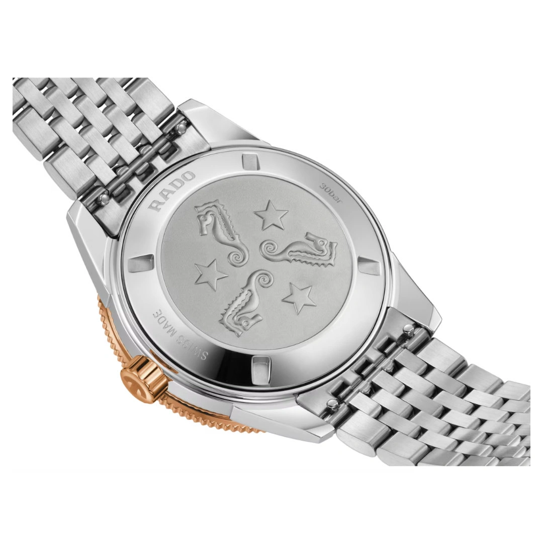 At its heart beats the Rado Caliber R763 automatic movement, engineered with 25 jewels, regulated in five positions, and equipped with an antimagnetic Nivachron™ hairspring for enhanced precision and reliability. Delivering an impressive 80-hour power reserve, this timepiece is built for both performance and everyday wear. The screw-down crown and caseback enhance durability, while the stainless steel bracelet with a secure 3-fold clasp completes a watch that effortlessly blends heritage, innovation, and Swiss engineering excellence.