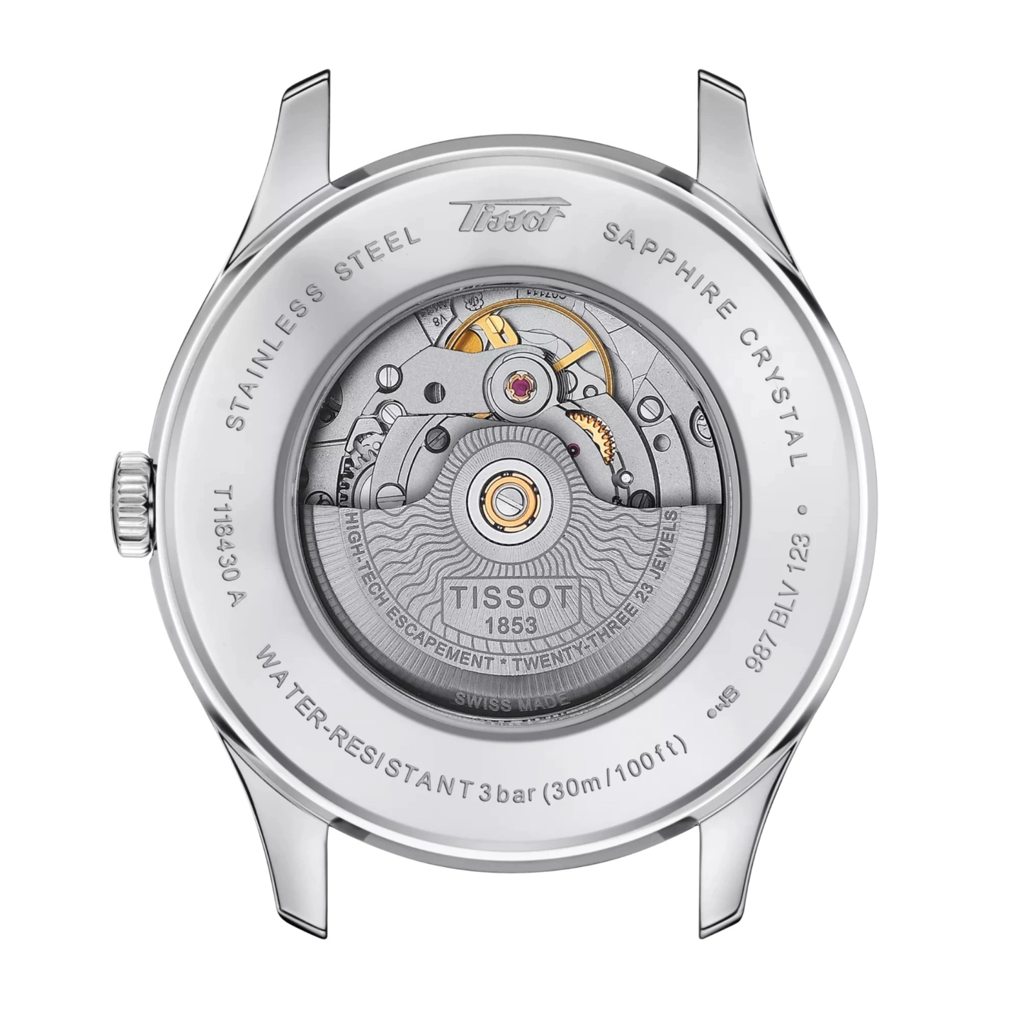 Inspired by the original 1954 Visodate, the Tissot Heritage Visodate Powermatic 80 blends timeless elegance with modern Swiss technology. Featuring a gently curved black dial, domed sapphire crystal, and polished stainless steel case, this classic timepiece highlights a prominently displayed day-date window. Powered by the Powermatic 80 automatic movement with an 80-hour power reserve and a patented Nivachron balance spring, this watch is as reliable as it is refined. The transparent case back reveals the sophisticated inner workings, while the black leather strap and butterfly clasp complete the vintage look with modern comfort.