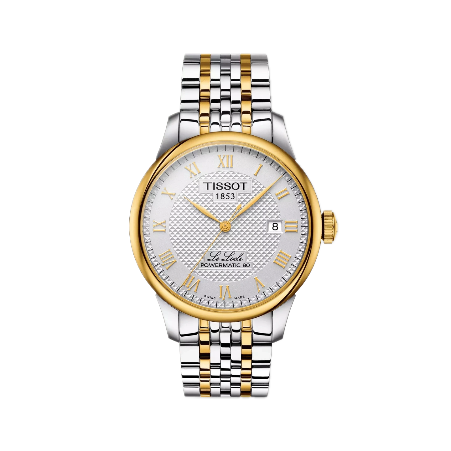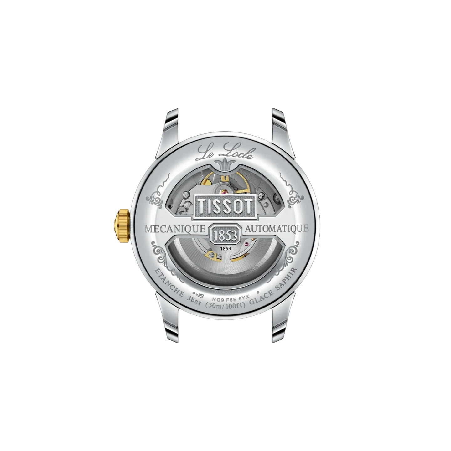 Crafted from durable 316L stainless steel with a luxurious yellow gold PVD coating, the round case exudes timeless charm while offering a sleek 9.75 mm profile for a comfortable fit. Its silver dial features Roman numeral indices and delicate detailing that evoke traditional watchmaking elegance. The design is completed by a see-through caseback, engraved with the signature Le Locle motif—an homage to Tissot’s roots.