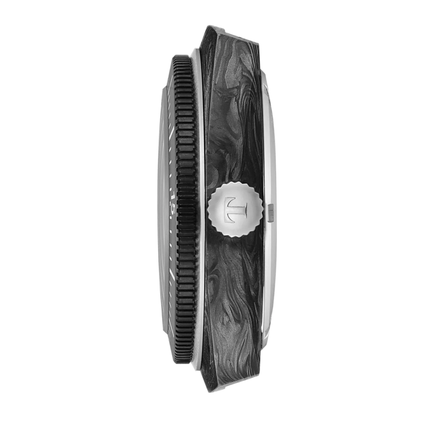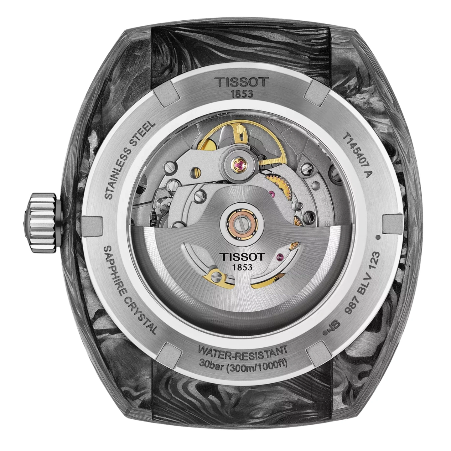 The Tissot Sideral S Powermatic 80 stands out with its fusion of vintage design and cutting-edge materials. The forged carbon case and bold red strap make a powerful style statement, while the reliable automatic movement, high water resistance, and quick-change strap system ensure this watch is as functional as it is distinctive.