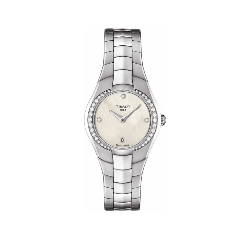 A sleek and feminine timepiece, the Tissot T-Round blends understated elegance with dazzling detail. The diamond-set bezel and dial markers enhance its sophistication, while the slim profile and quartz precision make it an ideal choice for both formal and everyday wear.
