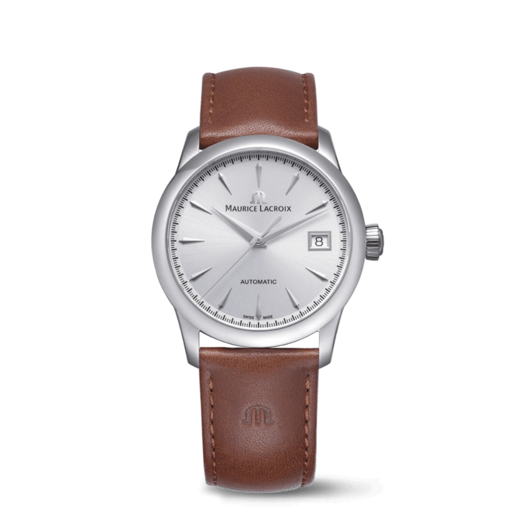 Endowed with elegant styling and sleek proportions, the 1975 collection exudes a vintage vibe while simultaneously promising enduring appeal. Clean, refined, and delivering high perceived value, this collection may be new, but it remains packed with familiar Maurice Lacroix characteristics. From the brushed and polished stainless steel case to the sun-brushed silver dial with black printings, every detail reflects meticulous craftsmanship. Featuring an automatic movement visible through the open case back, the 1975 collection combines classic elegance with mechanical sophistication, making it a versatile timepiece for both formal and casual occasions.