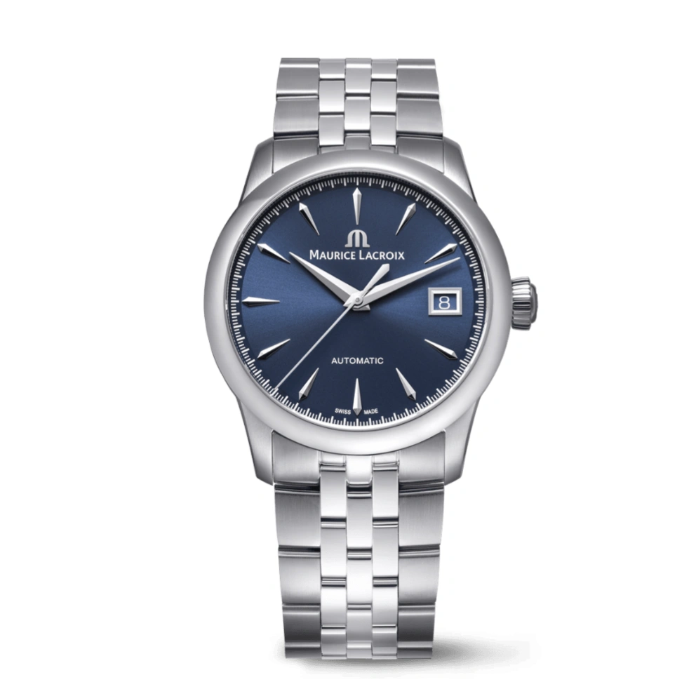 Endowed with elegant styling and sleek proportions, the 1975 collection exudes a vintage vibe while simultaneously promising enduring appeal. Clean, refined, and delivering high perceived value, this collection may be new, but it remains packed with familiar Maurice Lacroix characteristics. From the brushed and polished stainless steel case to the sun-brushed blue dial with silver powder printing, every detail reflects meticulous craftsmanship. Featuring an automatic ML115 movement visible through the open case back, the 1975 collection combines classic elegance with mechanical sophistication, making it a versatile timepiece suitable for both formal and casual occasions.