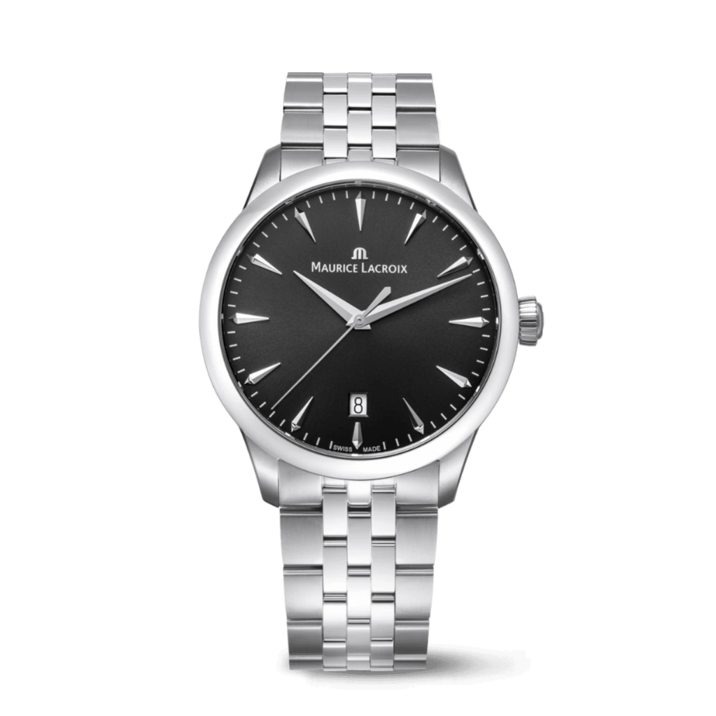 Endowed with elegant styling and sleek proportions, the 1975 collection exudes a vintage vibe while simultaneously promising enduring appeal. Clean, refined, and delivering high perceived value, this collection may be new, but it remains packed with familiar Maurice Lacroix characteristics. From the brushed and polished stainless steel case to the sun-brushed black dial with silver powder printing, every detail reflects meticulous craftsmanship. Combining timeless elegance with modern functionality, the 1975 collection is a versatile timepiece, perfect for both formal and casual occasions.