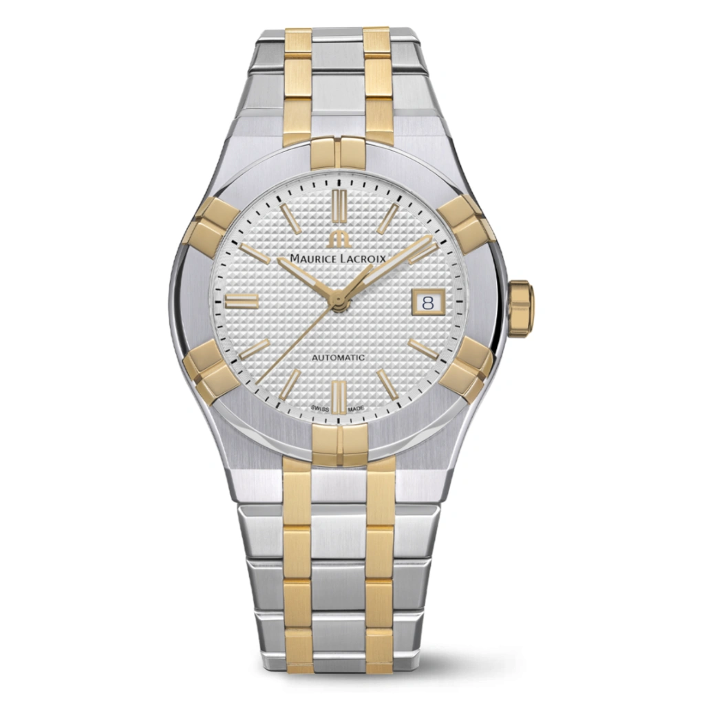 Urban-inspired and mechanically sophisticated, the AIKON Automatic blends contemporary aesthetics with ergonomic design, making it the perfect companion for city life. Its playful use of contrasts and bold shapes delivers a striking presence on the wrist, while Swiss craftsmanship ensures precision and reliability. The silver “Clous de Paris” dial, paired with rose gold-plated hands and indexes with white Super-Luminova, exudes elegance, and the open case back offers a glimpse into the beautifully decorated movement, highlighting the art of watchmaking.