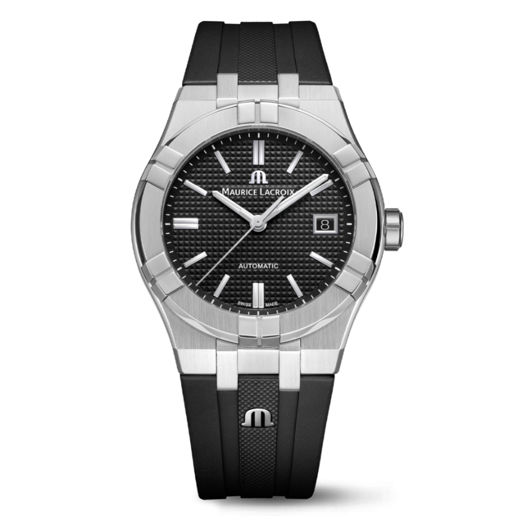 Bracelet/Strap: Black rubber strap with Maurice Lacroix 'm' logo