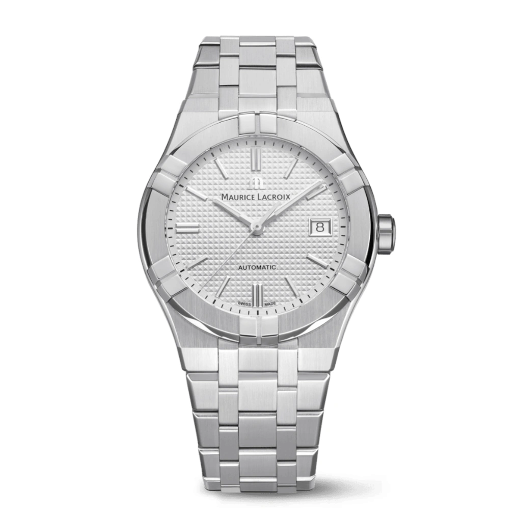 Bold, urban, and unmistakably iconic, the AIKON Automatic takes inspiration from the legendary Calypso of the 90s. Its silver “Clous de Paris” dial, rhodium-plated hands with white Super-Luminova, and six-claw bezel convey contemporary elegance and Swiss precision. The open case back reveals the beautifully decorated ML115 automatic movement, making it a statement of craftsmanship and style.