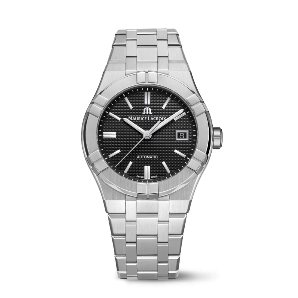 Urban-inspired and mechanically precise, the AIKON Automatic blends contemporary aesthetics with Swiss craftsmanship. Its black Clous de Paris dial contrasts elegantly with rhodium-plated hands and indexes, enhanced with white Super-Luminova for superior readability. The six-claw bezel and open case back reveal the meticulously decorated ML115 movement, making this timepiece both a technical marvel and a bold statement for city life.