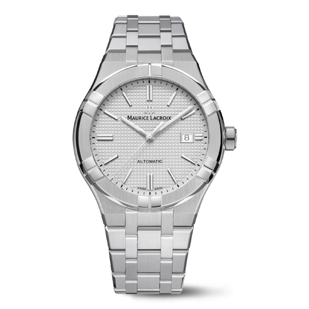 The AIKON Automatic is crafted for the modern urban lifestyle, blending contemporary design with ergonomic comfort and the sophistication of Swiss mechanical engineering. Its bold contrasts, architectural lines, and signature six-claw bezel create a strong visual identity that stands out effortlessly. The silver Clous de Paris dial adds refined texture and depth, making this timepiece an elegant yet dynamic companion for everyday city living.