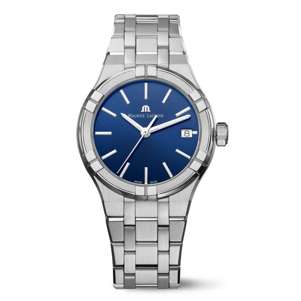 Inspired by the iconic Calypso of the 90s, the AIKON has evolved into an icon in its own right. Its design language embraces bold, urban styling while masterfully playing with contrasts. Like all Maurice Lacroix watches, the AIKON unites Swiss craftsmanship with high perceived value, delivering a timepiece that is both stylish and reliable. Perfect for everyday wear, this model pairs a sun-brushed blue dial with a sleek stainless steel bracelet, combining sporty aesthetics with timeless elegance.