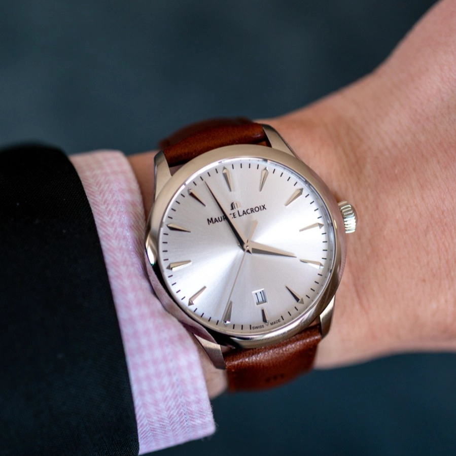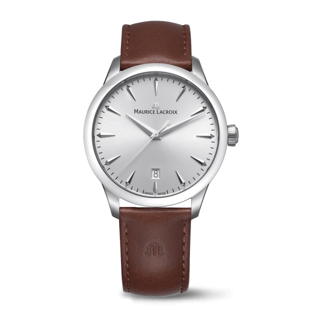 Inspired by timeless design, the Maurice Lacroix 1975 Quartz 39mm blends vintage aesthetics with modern precision. Its refined stainless-steel case, paired with a silver sun-brushed dial and rhodium-plated details, delivers a sophisticated look suitable for both formal and everyday wear. The sleek proportions and minimalist layout reflect classic watchmaking heritage while maintaining a contemporary appeal.