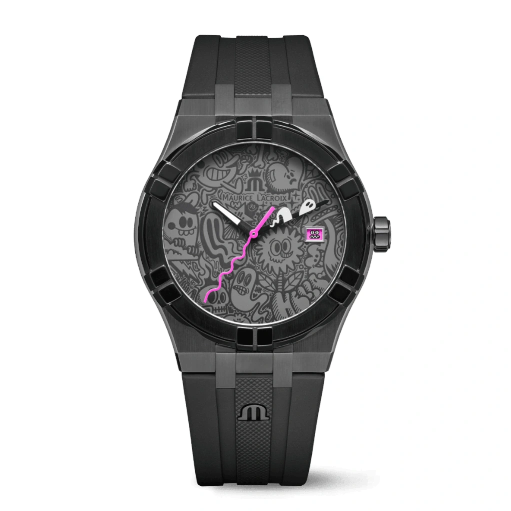 Inspired by the iconic Calypso of the 90s, the AIKON has become an icon in its own right. This limited edition of 500 pieces embraces bold, urban styling while masterfully playing with contrasts. Like all Maurice Lacroix watches, it combines Swiss craftsmanship with high perceived value, delivering a distinctive, contemporary timepiece. The grey wotto motif dial paired with unique matte black and pink hands ensures a striking visual appeal, making it a must-have for collectors.