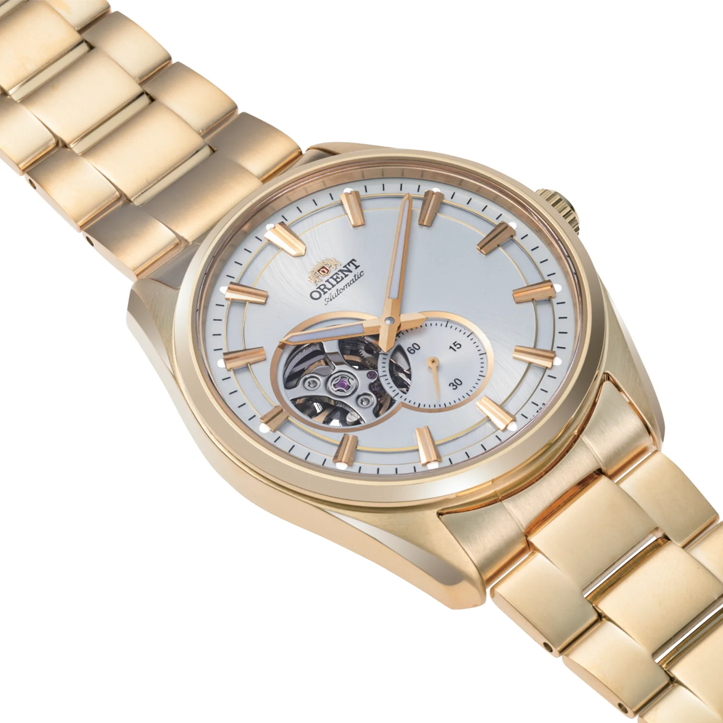 The RA-AR0007S exemplifies contemporary elegance with a youthful edge. Its semi-skeleton dial features a cutout at 9 o’clock, partially overlapping a small seconds subdial at 6 o’clock, creating a layered, modern design that emphasizes depth and complexity. This model's white dial is accented by gold-tone hands and applied indices, delivering a blend of warmth and luxury that resonates especially with younger audiences. The bold yet sleek case design offers strong wrist presence, continuing the global popularity of the Semi Skeleton line.