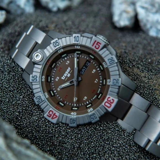 The decision to manufacture the case of the P99 T Tactical from titanium equips the timepiece with tremendous versatility and protects it against all physical influences: The interplay between the resilient lightweight metal, double-sided anti-reflective sapphire crystal, screw-down crown, and water resistance up to 20 bar effectively protects the Swiss movement from shocks, water damage, and the influence of strong magnetic fields on accuracy. Thanks to the high corrosion resistance of titanium, the P99 T Tactical can also withstand saltwater environments without issue. Despite its solid construction and a diameter of 46 millimeters, the timepiece feels surprisingly lightweight on the wrist. The hypoallergenic properties of titanium add to the exceptional feel and ensure long-lasting wearing comfort.