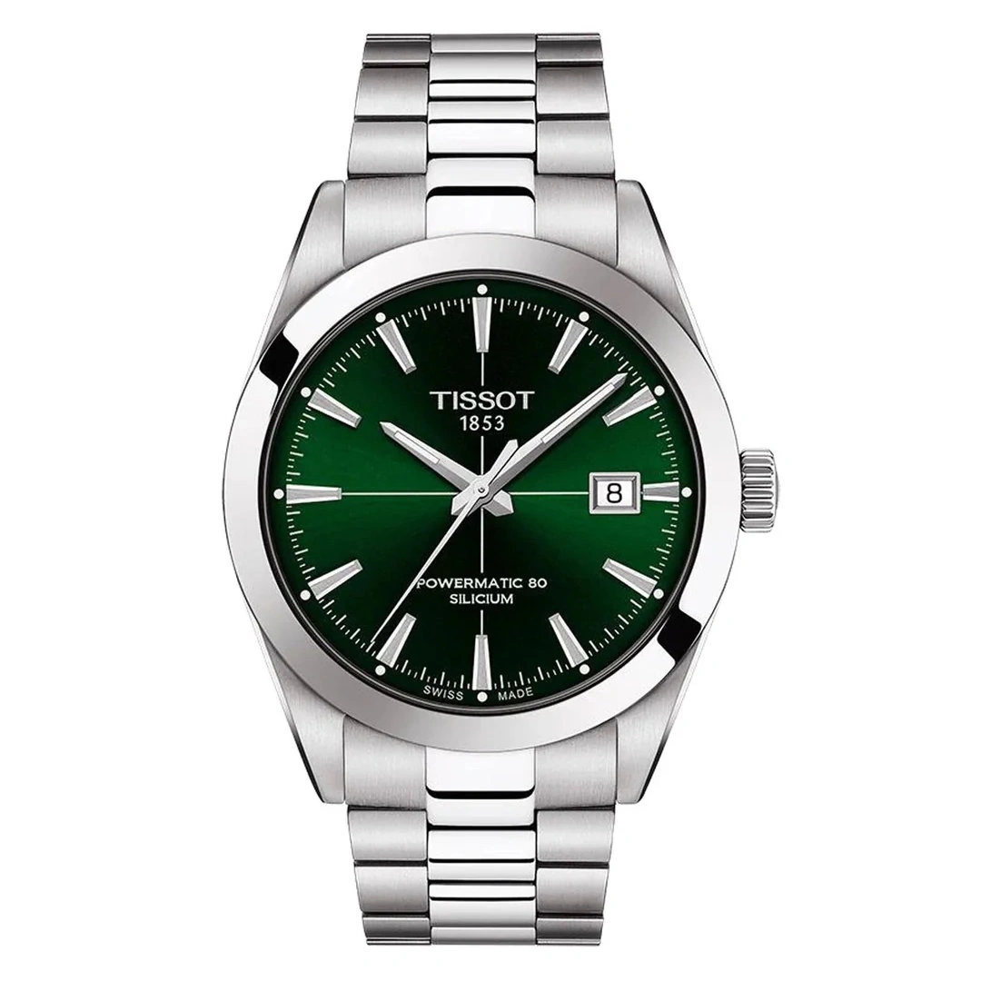 Inspired by a Tissot timepiece from the 1960s, the Tissot Gentleman Automatic is designed for the active and modern man of today. Its 40 mm 316L stainless-steel case is paired with a domed sapphire crystal featuring an anti-reflective coating, ensuring durability and excellent legibility. The green dial, accented with luminous hands and indexes treated with Super-LumiNova®, adds a refined yet contemporary character suitable for any occasion.