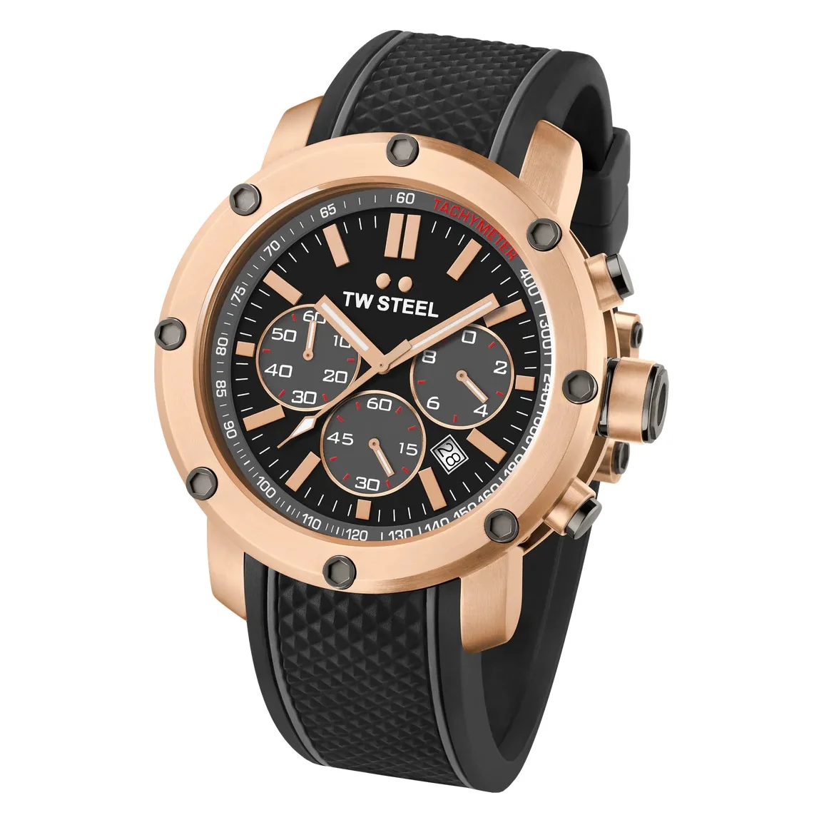 A perfect fusion of masculine edge and industrial-inspired elegance, this TW Steel Grandeur Tech watch stands out with its bold rose gold tones and commanding presence. Featuring a robust case and performance-driven design, it's crafted for men who appreciate both strength and style.